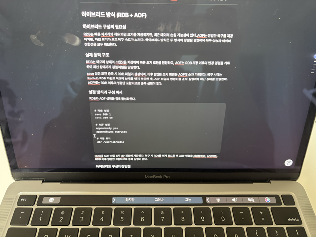 - RDB는 메모리 상태의 스냅샷을 저장하여 빠른 초기 로딩을 담당하고, AOF는 RDB 저장 이후의 변경 명령을 기록하여 최신 상태까지 정밀 복원을 담당한다.