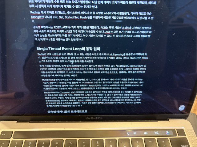 Redis 6.0부터는 네트워크 I/O 처리를 위한 멀티스레드가 도입되었다. 중요한 점은 명령 실행 자체는 여전히 메인 스레드에서만 수행된다는 것이다. I/O 스레드는 클라이언트 요청을 읽고 파싱하는 부분과 응답을 네트워크로 전송하는 부분만 담당한다. 이로써 명령 실행의 원자성(Atomic)은 유지하면서도 네트워크 I/O 병목을 해소해 전체 처리량을 향상시킬 수 있다.