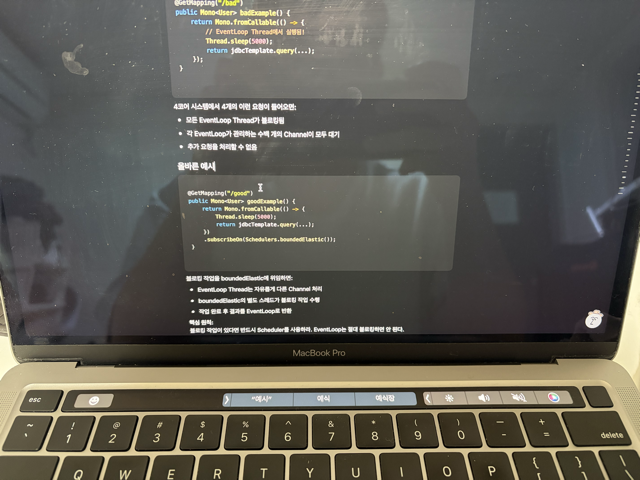 오늘 강의에서는 Spring WebFlux의 컨트롤러 작성 방식과 서비스, 레파지토리 코드 실습을 진행했다. WebFlux는 Annotation 기반 컨트롤러와 Functional Endpoint 두 가지 방식을 제공하며, 각각의 장단점이 존재한다. Annotation 방식은 기존 Spring MVC와 유사하여 익숙하고, Functional Endpoint는 RouterFunction과 HandlerFunction을 조합한 함수형 스타일로 더 명시적인 라우팅을 제공한다. 그런데 컨트롤러에서 Mono, Flux를 응답하는데 응답값이 반환되는 것일까? 알아보도록 하자.