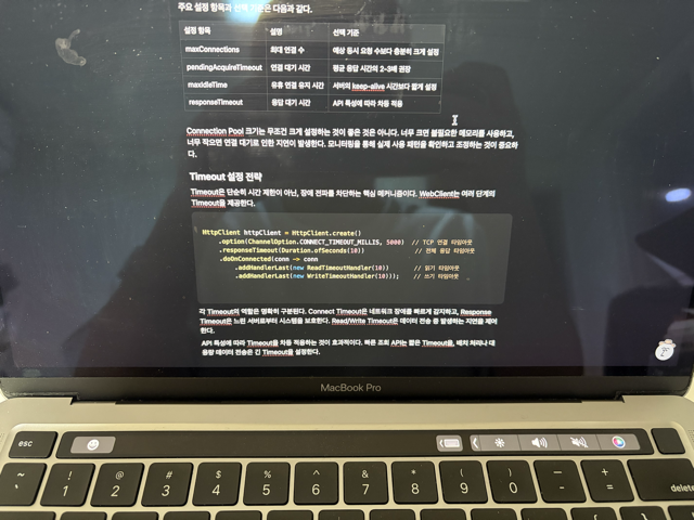 | pendingAcquireTimeout | 연결 대기 시간 | 평균 응답 시간의 2-3배 권장 |